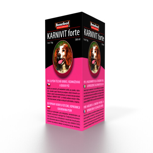 A KARNIVIT FORTE csökkenti a zsír lerakódását a szövetekben és segít a zsírsavak energiává történő átalakításában. Növeli a kutyák vitalitását és a szervezetük ellenálló képességét. Csökkenti a tejsav szintjét a sejtekben, csökkenti az izmok degeneratív elváltozását és védi a sejthártyát. Rövidíti az intenzív stressz után szükséges pihenést (műtét, szülés, kiállítás, versenyek stb.) és támogatja a máj anyagcsere folyamatait, valamint a szív és vázizom működését.